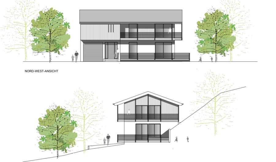 Der genehmigte Entwurf sieht ein modernes Einfamilienhaus mit ca. 199qm Wohnfläche vor, das sich harmonisch in die Hanglage einfügt und gleichzeitig ein Maximum an Wohnkomfort bietet. Große Fensterflächen, eine durchdachte Raumaufteilung sowie die Option für einen großzügigen Garten- oder Terrassenbereich schaffen ein ideales Zuhause für Familien oder Paare mit gehobenen Ansprüchen.