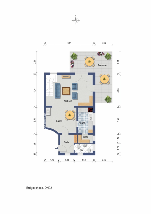 - lichtdurchflutete Wohnräume mit großzügigem Grundriss