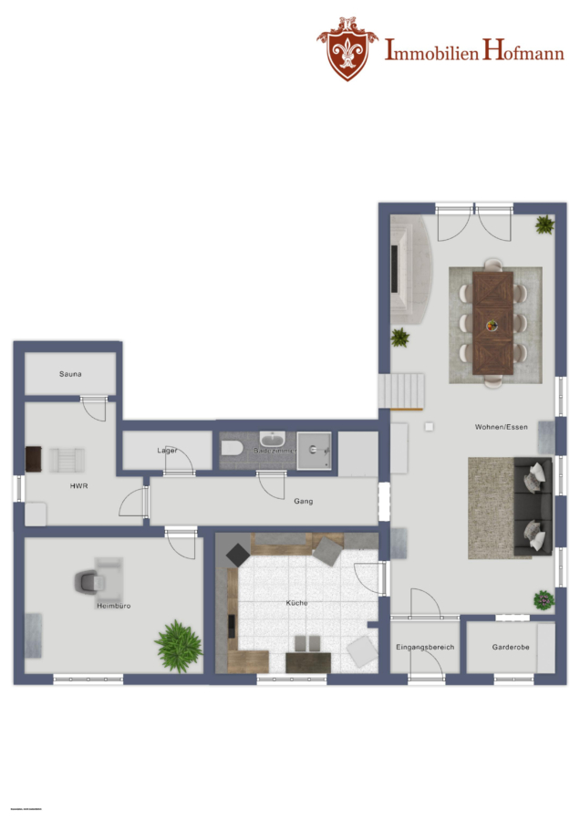 Dieses Exposé stellt kein Verkaufsangebot dar. Es dient allein Informationszwecken. Alle Angaben und Darstellungen in diesem Exposé wurden zwar mit größter Sorgfalt überprüft und zusammengestellt, sie können sich aber jederzeit ändern. Weder Immobilien Hofmann noch die übrigen Verantwortlichen sind verpflichtet, den Empfänger dieses Exposés über etwaige Änderungen zu informieren. Bei technischen Angaben wie z.B. Wohnungsgrößen, sind Abweichungen möglich. Bilder sind Interpretationen des Visualisierers. Bei den abgebildeten Grundrissvarianten, Innenraumdarstellungen und Abbildungen der Sanitär- und sonstigen Ausstattungen handelt es sich um unverbindliche Einrichtungsbeispiele. Maßgeblich für die geschuldete Ausstattung und Ausführung der betreffenden Immobilie sowie deren Grundriss sind allein der notarielle Kaufvertrag und die diesem beigefügten Baubeschreibungen, Pläne und Grundrisse. Weder Immobilien Hofmann noch die übrigen Verantwortlichen übernehmen eine Haftung für die Richtigkeit und Vollständigkeit dieses Exposés. Die Haftung für Vorsatz und grobe Fahrlässigkeit sowie für die Verletzung von Leben, Körper und Gesundheit bleiben unberührt.