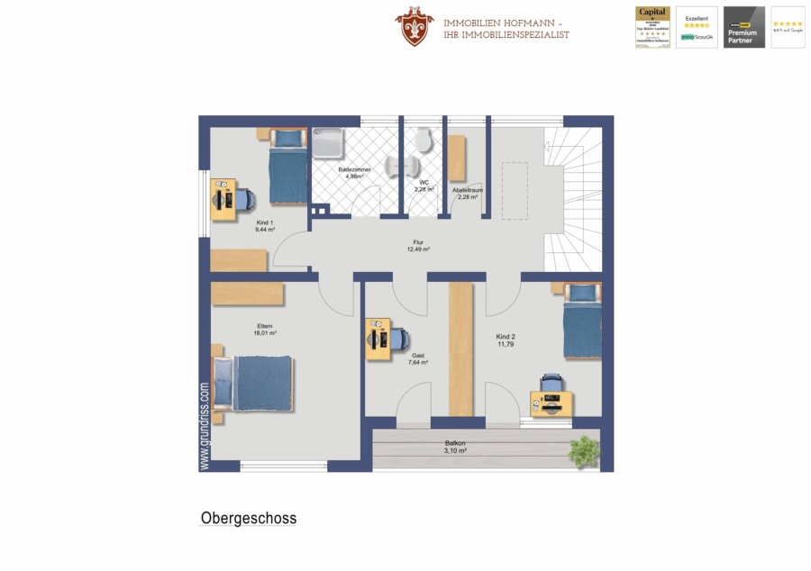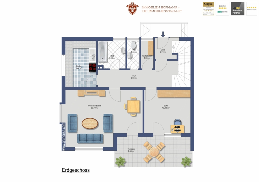 Dieses Exposé stellt kein Verkaufsangebot dar. Es dient allein Informationszwecken. Alle Angaben und Darstellungen in diesem Exposé wurden zwar mit größter Sorgfalt überprüft und zusammengestellt, sie können sich aber jederzeit ändern. Weder Immobilien Hofmann noch die übrigen Verantwortlichen sind verpflichtet, den Empfänger dieses Exposés über etwaige Änderungen zu informieren. Bei technischen Angaben wie z.B. Wohnungsgrößen, sind Abweichungen möglich. Bilder sind Interpretationen des Visualisierers. Bei den abgebildeten Grundrissvarianten, Innenraumdarstellungen und Abbildungen der Sanitär- und sonstigen Ausstattungen handelt es sich um unverbindliche Einrichtungsbeispiele. Maßgeblich für die geschuldete Ausstattung und Ausführung der betreffenden Immobilie sowie deren Grundriss sind allein der notarielle Kaufvertrag und die diesem beigefügten Baubeschreibungen, Pläne und Grundrisse. Weder Immobilien Hofmann noch die übrigen Verantwortlichen übernehmen eine Haftung für die Richtigkeit und Vollständigkeit dieses Exposés. Die Haftung für Vorsatz und grobe Fahrlässigkeit sowie für die Verletzung von Leben, Körper und Gesundheit bleiben unberührt.