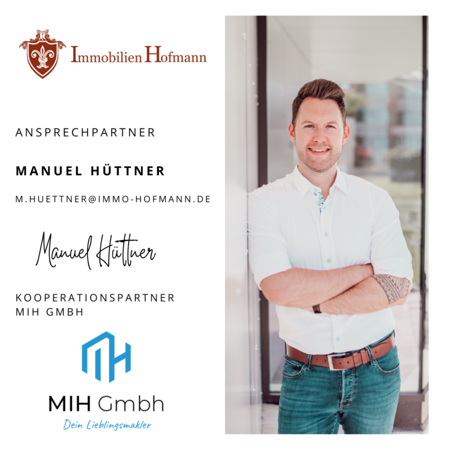 Dieses Exposé stellt kein Verkaufsangebot dar. Es dient allein Informationszwecken. Alle Angaben und Darstellungen in diesem Exposé wurden zwar mit größter Sorgfalt überprüft und zusammengestellt, sie können sich aber jederzeit ändern. Weder Immobilien Hofmann noch die übrigen Verantwortlichen sind verpflichtet, den Empfänger dieses Exposés über etwaige Änderungen zu informieren. Bei technischen Angaben wie z.B. Wohnungsgrößen, sind Abweichungen möglich. Bilder sind Interpretationen des Visualisierers. Bei den abgebildeten Grundrissvarianten, Innenraumdarstellungen und Abbildungen der Sanitär- und sonstigen Ausstattungen handelt es sich um unverbindliche Einrichtungsbeispiele. Maßgeblich für die geschuldete Ausstattung und Ausführung der betreffenden Immobilie sowie deren Grundriss sind allein der notarielle Kaufvertrag und die diesem beigefügten Baubeschreibungen, Pläne und Grundrisse. Weder Immobilien Hofmann noch die übrigen Verantwortlichen übernehmen eine Haftung für die Richtigkeit und Vollständigkeit dieses Exposés. Die Haftung für Vorsatz und grobe Fahrlässigkeit sowie für die Verletzung von Leben, Körper und Gesundheit bleiben unberührt.