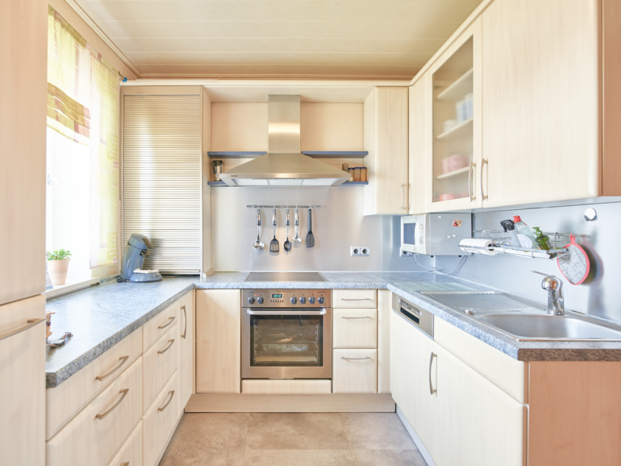 Die Küche ist als separater Raum ausgeführt und mit einer gepflegten Einbauküche ausgestattet.