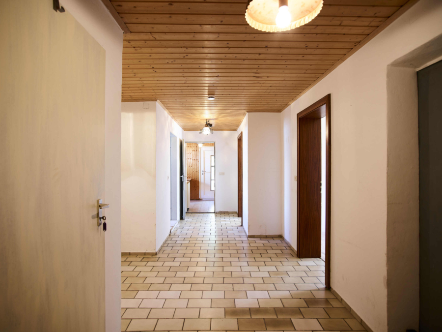 Die solide Grundstruktur bietet viel Freiraum zur Neugestaltung – ob als großzügiges Einfamilienhaus oder durch Trennung in zwei eigenständige Wohneinheiten. Mögliche Maßnahmen: