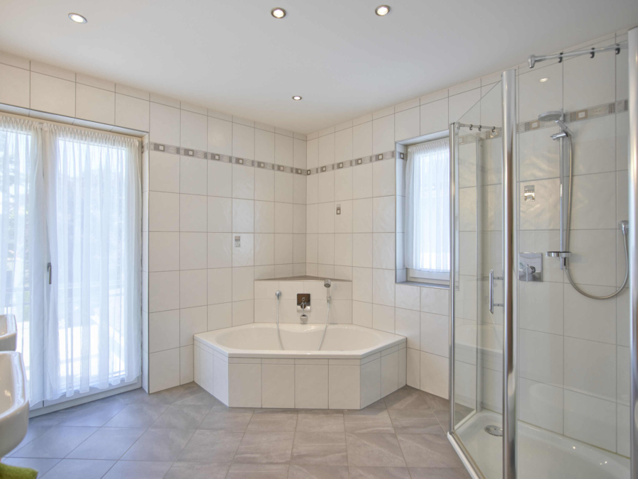 Das Haus ist effizient beheizbar durch eine Gaszentralheizung, die im Jahr 2023 erneuert wurde. Ergänzend dazu ist im oberen Bad eine Fußbodenheizung installiert. Die zwei separaten WCs – je eines im Erdgeschoss und im Obergeschoss – erlauben es, Bad und WC getrennt zu nutzen: das obere Badezimmer verfügt über Badewanne und separate Dusche, alle Sanitärräume sind mit Fußbodenheizung versehen.