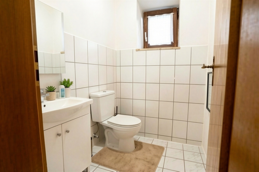 Die Wohnung im Obergeschoss ist ebenso gut aufgeteilt wie die Erdgeschosswohnung und verfügt über ein Wohnzimmer, zwei Schlafzimmer und eine Küche, ergänzt durch ein Tageslichtbad und ein Gäste-WC. Die Wohnung ist für eine Kaltmiete i.H.v. 360 € an einen zuverlässige Mieter vermietet.