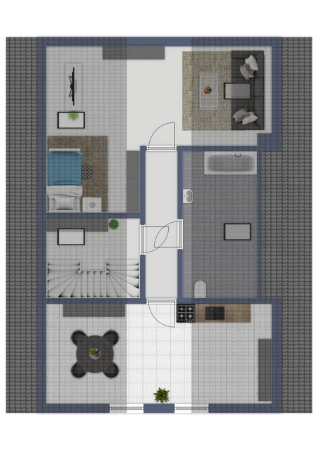 3. Dachgeschosswohnung (2-Zimmer, ca. 44 m²)