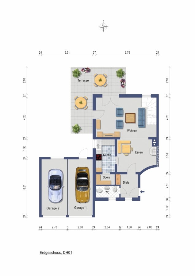 - lichtdurchflutete Wohnräume mit großzügigem Grundriss