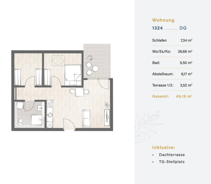 Die Fläche der Dachterrasse wurde mit 50% in der Wohnfläche berücksichtigt!