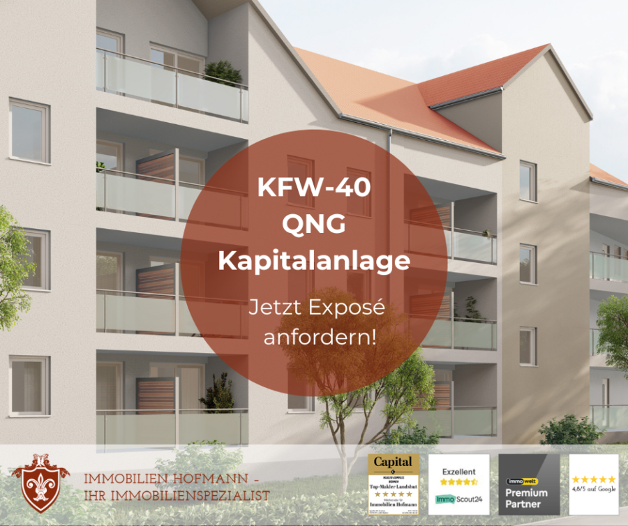 QNG-zertifiziertes Effizienzhaus KfW-40: Zugang zu KfW-Darlehen bis 150.000 € je Einheit, Zinssätze zuletzt ab ca. 1,3 % p. a. möglich. Sonder-AfA nach § 7b EStG in der Regel nutzbar – beschleunigte Abschreibung des Gebäudeanteils und damit spürbare Steuerentlastung in den Anfangsjahren. Küche inklusive = schneller marktfähig; Technik & Grundrisse = geringe Fluktuation. Kurz: niedrige Finanzierungskosten + starke Anfangsabschreibung + hohe Vermietbarkeit → attraktives Rendite-Setup in der Wirtschaftsregion Landshut mit der Möglichkeit einer zusätzlichen & professionellen Mieterverwaltung!